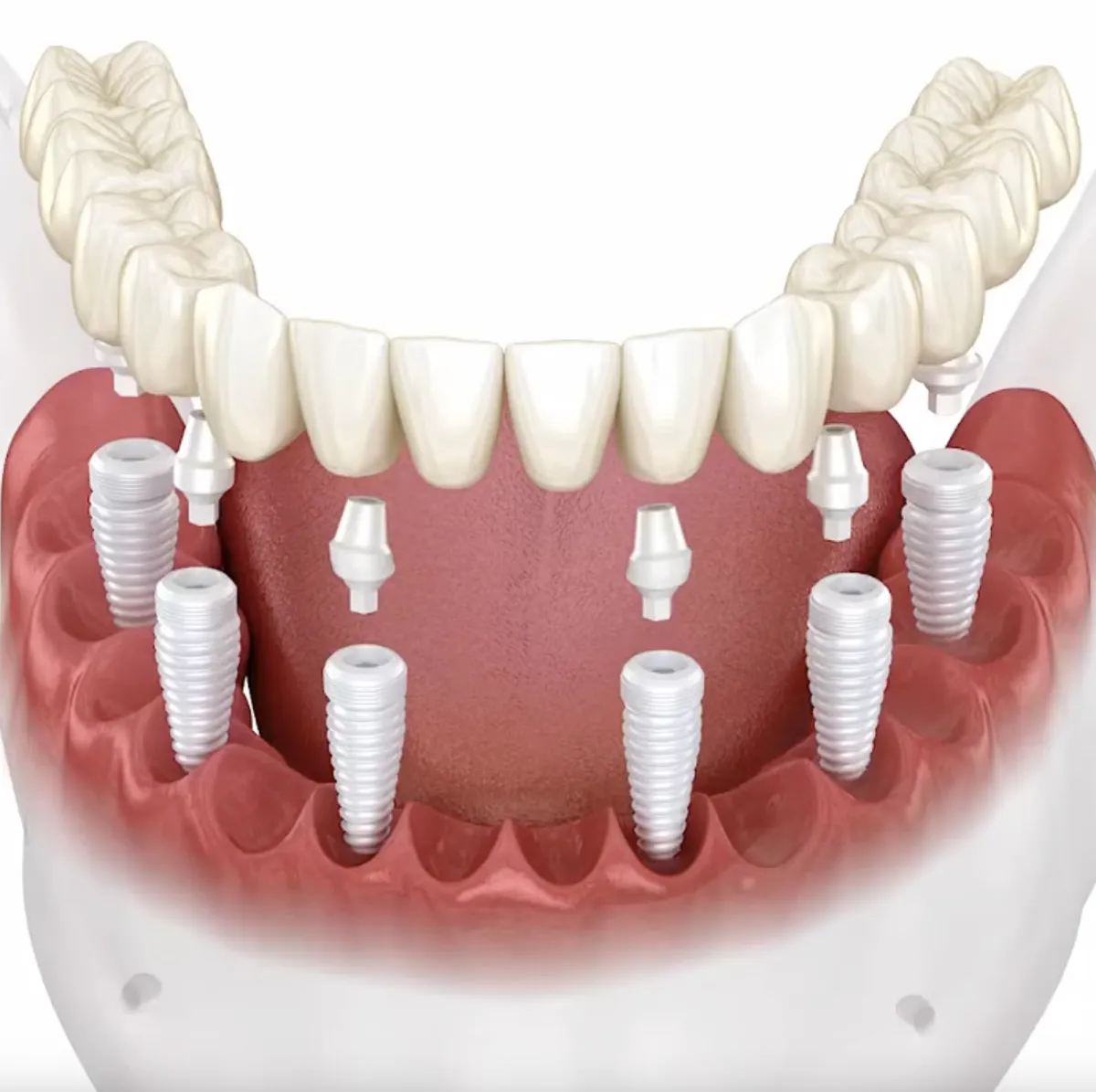 Når tandlægen sætter tandimplantater i din kæbe, vokser din knogle rundt om implantaterne.