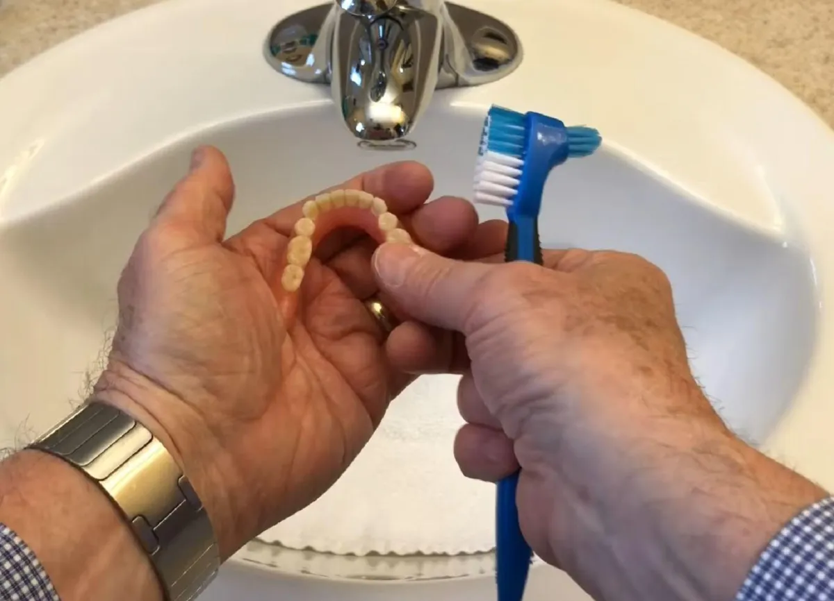 Snasket mad som kager eller kerner fra boller sætter sig fast på din protese. Du skal rengøre protesen, men så skal du tage den helt ud.