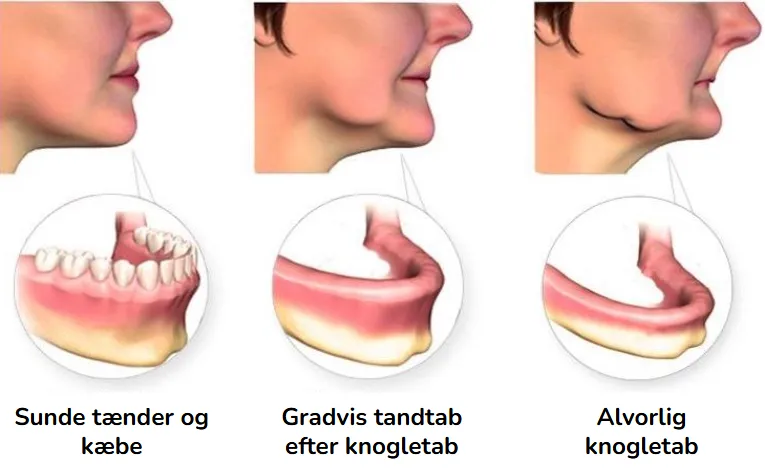 Når du mangler tænder bliver din kæbe svag og tynd.
