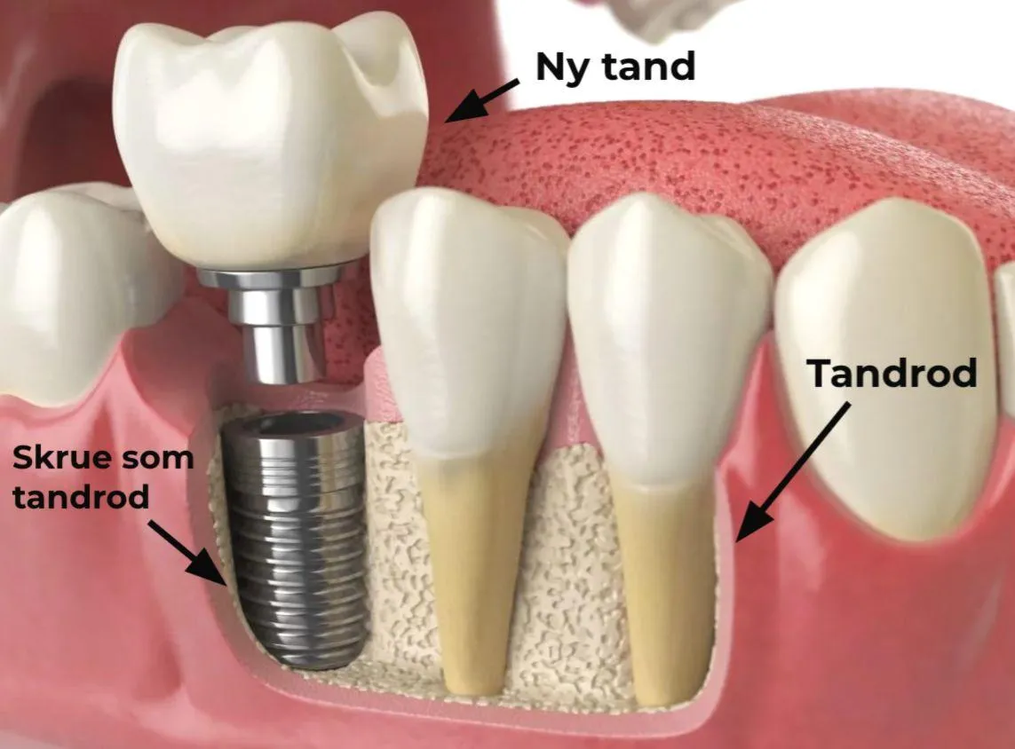 De nye tandrødder der er lavet af metal skruer hedder tandimplantater.