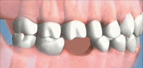 De andre tænder går mod hullet hvor du mangler tænder. Det sker fordi tænderne normalt støtter hinanden.